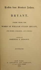 Of late days he has nearly, if not altogether abandoned literary pursuits, although still editing, with unabated vigour, "The New York Evening Post." He is married, (Mrs. Bryant still living,) has two daughters, (one of them Mrs. Parke Godwin,) and is residing for the present at Vice-Chancelor McCown's, near the junction of Warren and Church streets.